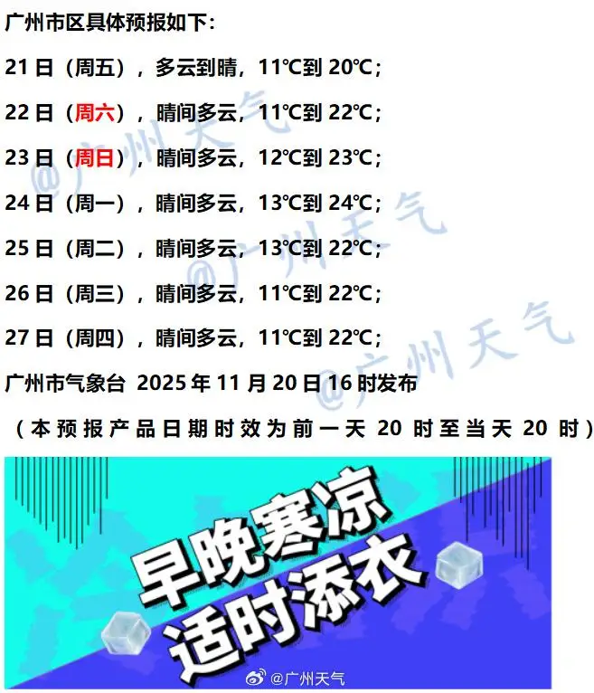 广州方面,未来几天以晴间多云为主,白天相对暖一些,早晚寒凉,天气持续干燥。大家别忘了及时补水,同时适时添减衣物。